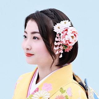 かづら清の髪飾りは、京の祇園らしいはんなりとした、やさしく淡く上品な可愛らしさを演出します。おしゃれ着から振袖まで幅広いコーディネートに合わせ、女性を華やかに彩る髪飾りです。