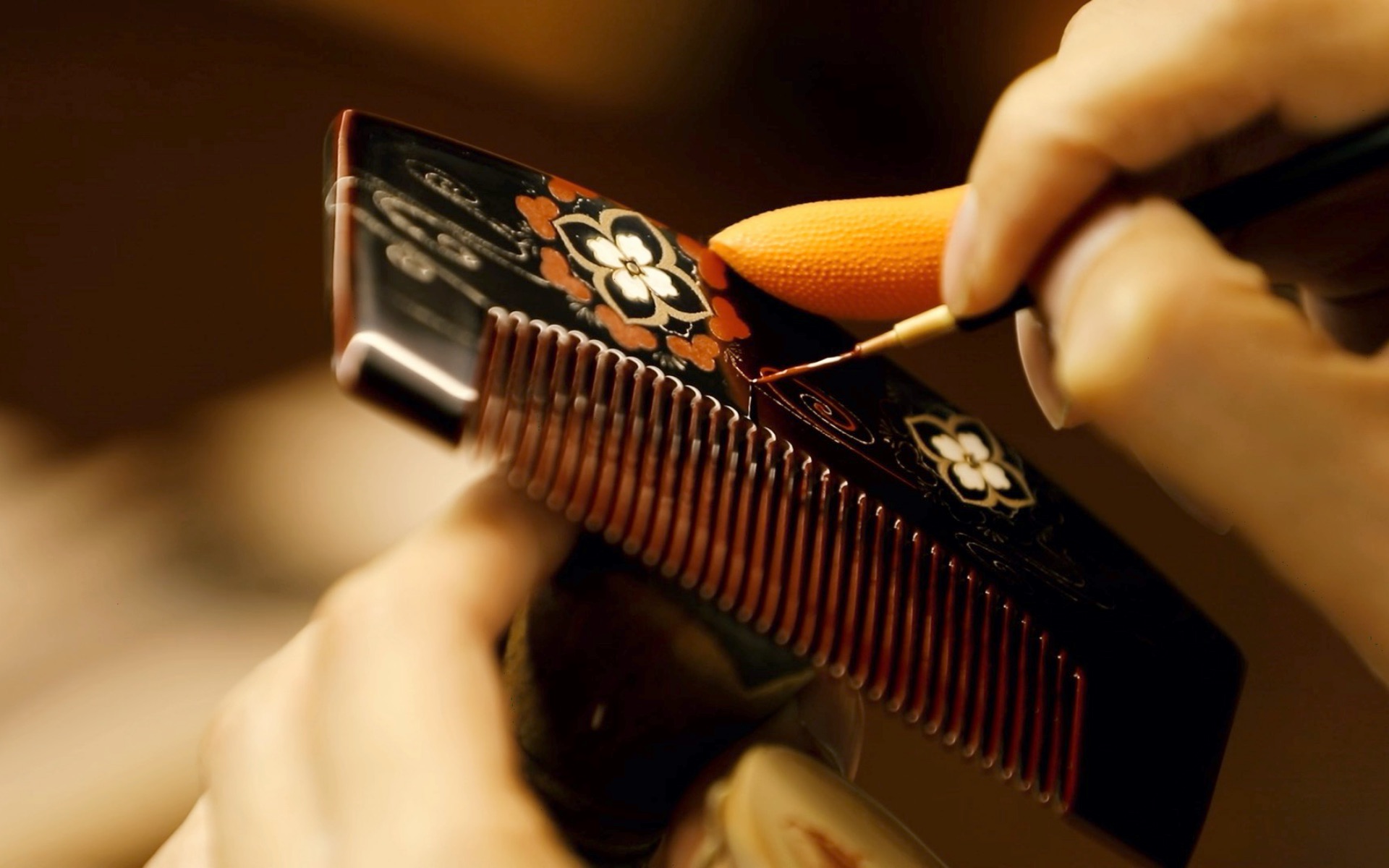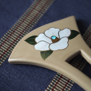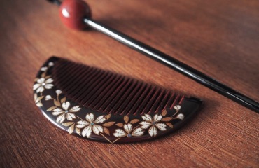 かんざしの曲線、艶めく漆。つまみ細工の花びら。均等に並ぶ歯、虹色に輝く螺鈿、散りばめられた輝くマテリアル…
