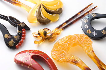 かづら清の髪飾りやつげ櫛、和小物は、伝統を受け継いだ数多くの職人の技が美しく折り重なることによって生み出されます。