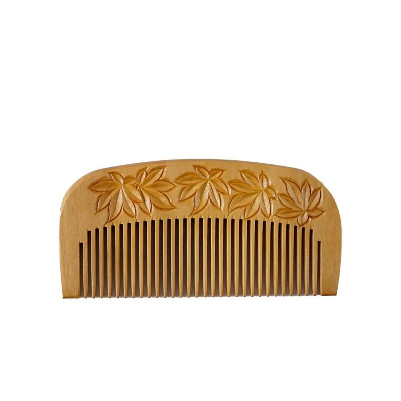 【つげ櫛】彫り解き櫛(紅葉)3寸