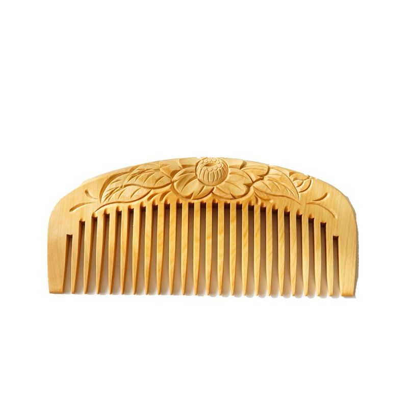 【つげ櫛】彫りパーマ櫛 (椿)3寸8分