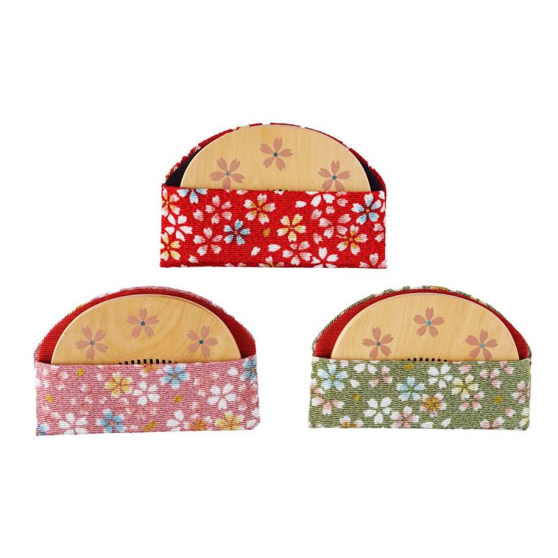 3. つげ櫛 本漆本蒔絵 桜(小桜)ちりめんケース入り 小判