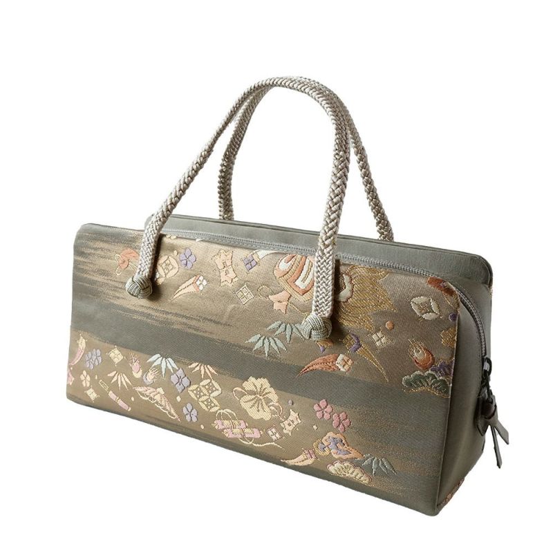4. 宝尽くし(茶地) 西陣織和装バッグ