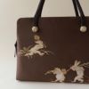 鳥獣戯画文様(茶) 西陣織和装バッグ (大)