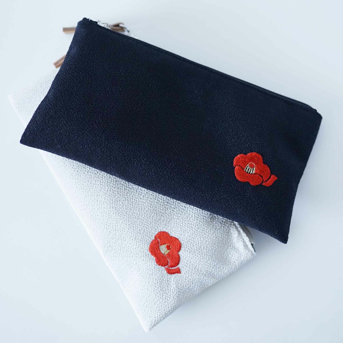 オリジナル ちりめん 椿刺繍マルチポーチ