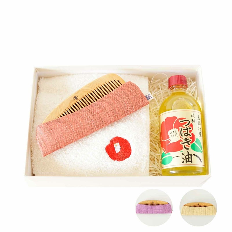 手つき櫛 京都産手織り麻ケースセット(あかね櫛)