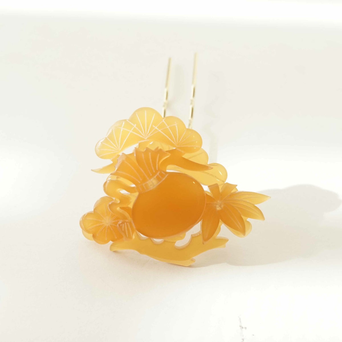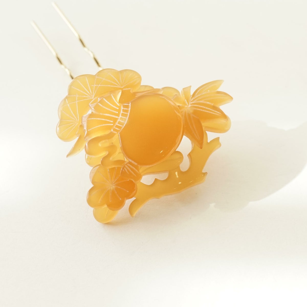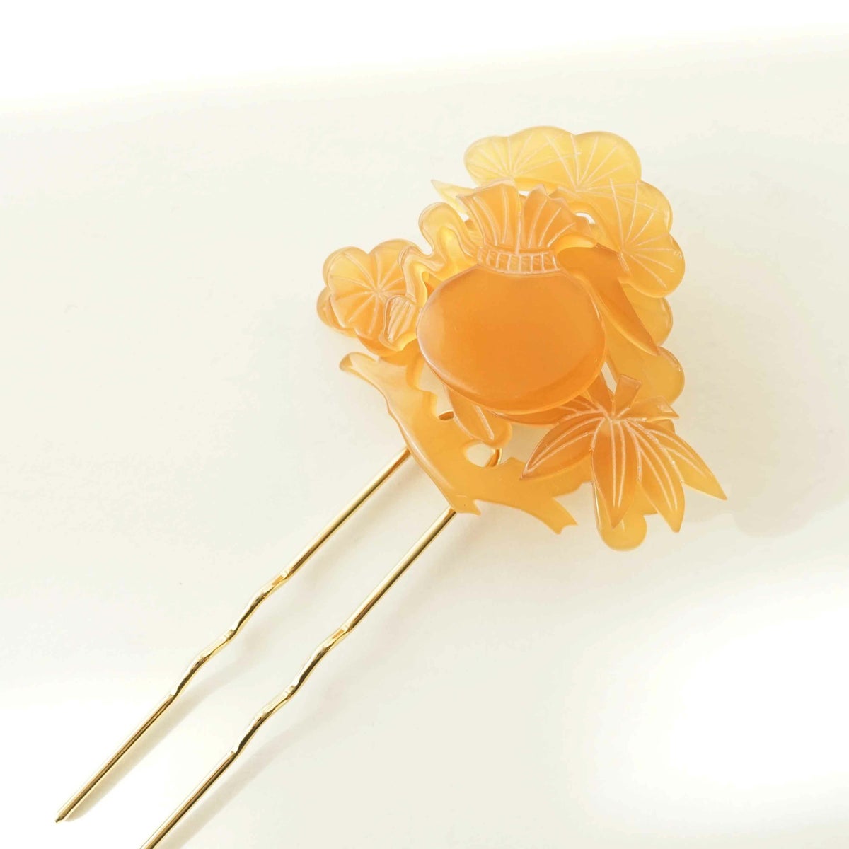 本漆純金蒔絵螺鈿かんざし 銀杏ピン 正倉院文様