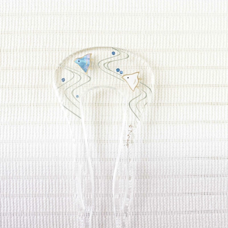アクリル(透明)本蒔絵かんざし(輪ピン) 千鳥