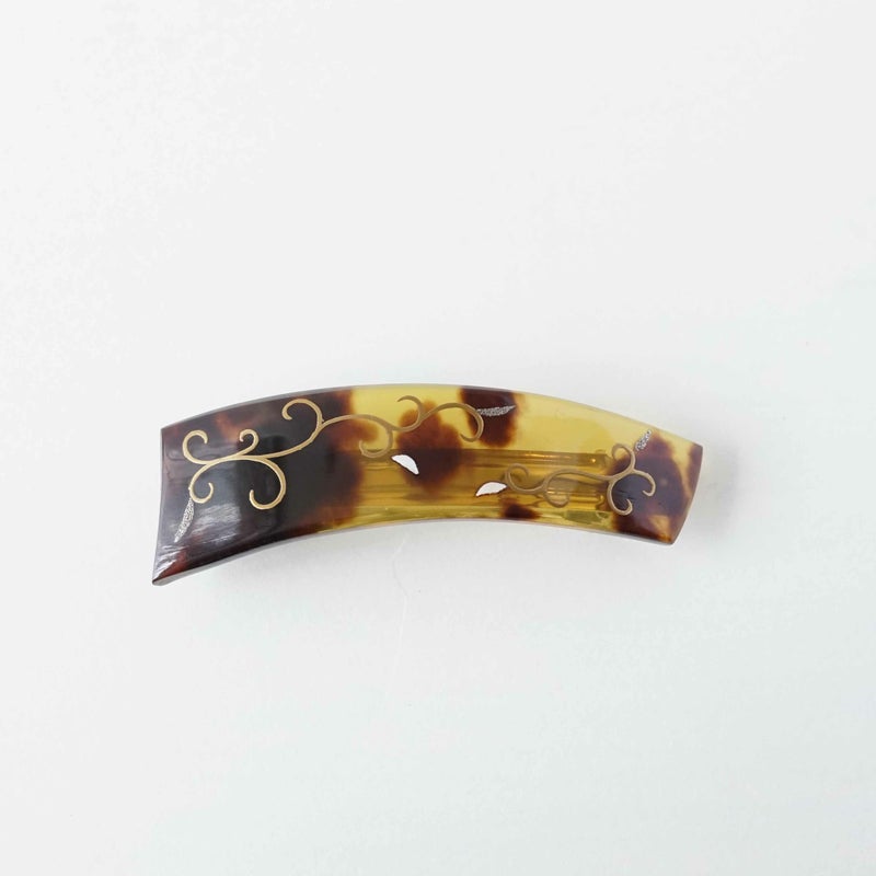 5. 本べっ甲 純金蒔絵螺鈿バレッタ 唐草文様 横長型