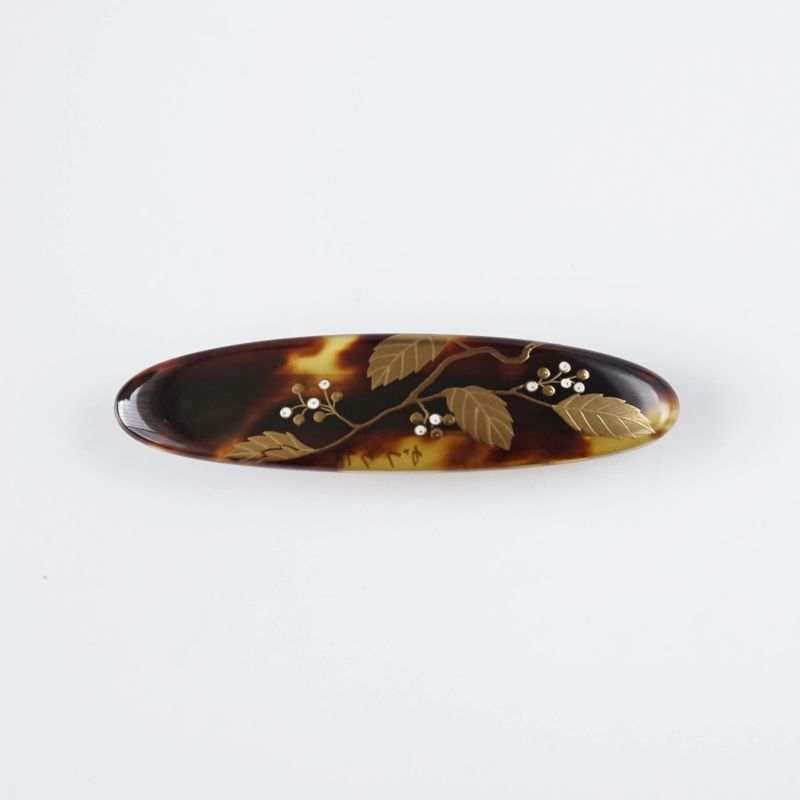 5. 本べっ甲 純金蒔絵螺鈿バレッタ ガマズミ文様 楕円型