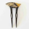 6. 本べっ甲 純金蒔絵螺鈿かんざし 二輪牡丹文様(透かし彫り波型)