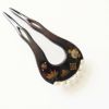 本べっ甲 純金蒔絵螺鈿かんざし 宝尽くし文様(パール付き)輪ピン