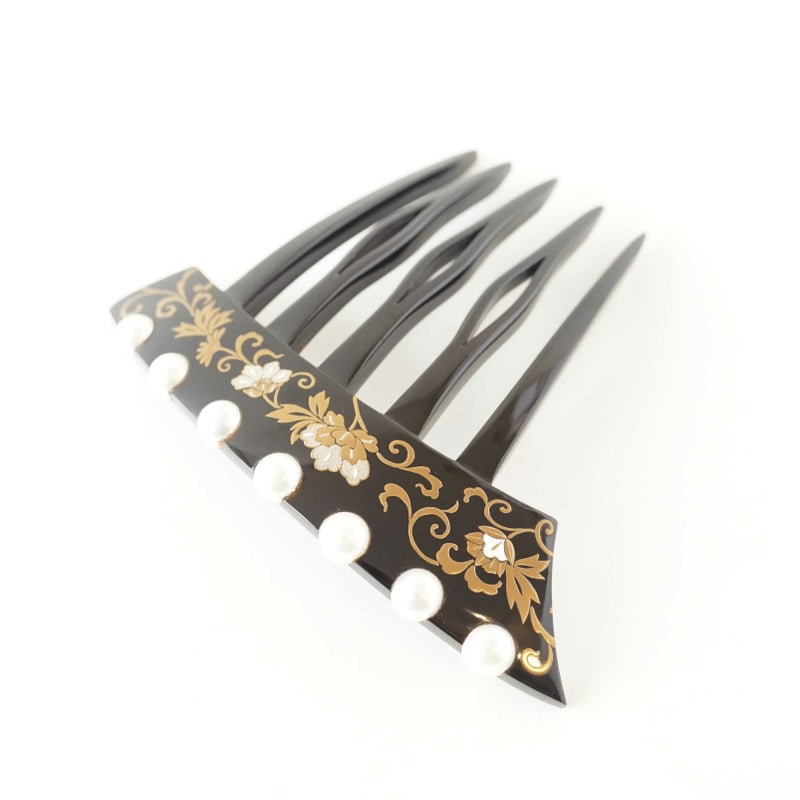 6. 本べっ甲 純金蒔絵螺鈿コーム 更紗文様(パール付き)