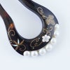 本べっ甲 純金蒔絵螺鈿かんざし 松竹梅文様(パール付き)輪ピン