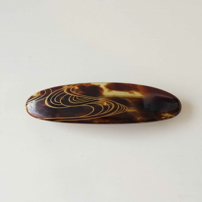 6. 本べっ甲 純金蒔絵螺鈿バレッタ 流水文様 楕円型