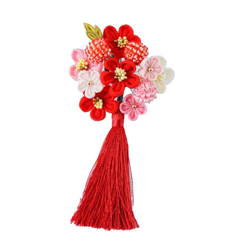 5. 七五三用髪飾り 小梅と鹿の子玉パッチン留め(房付き)