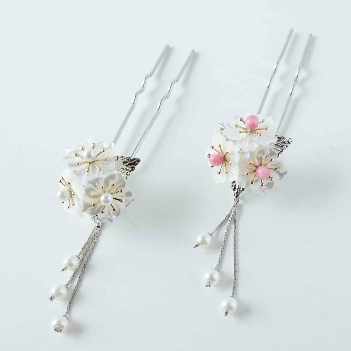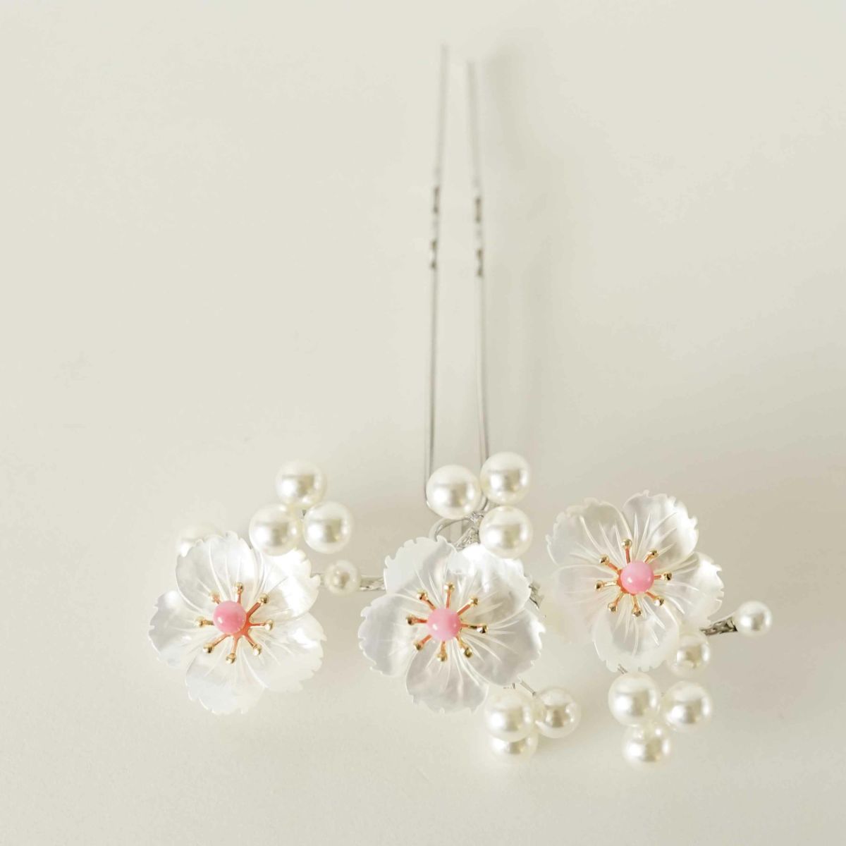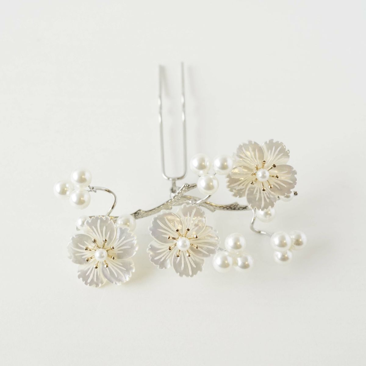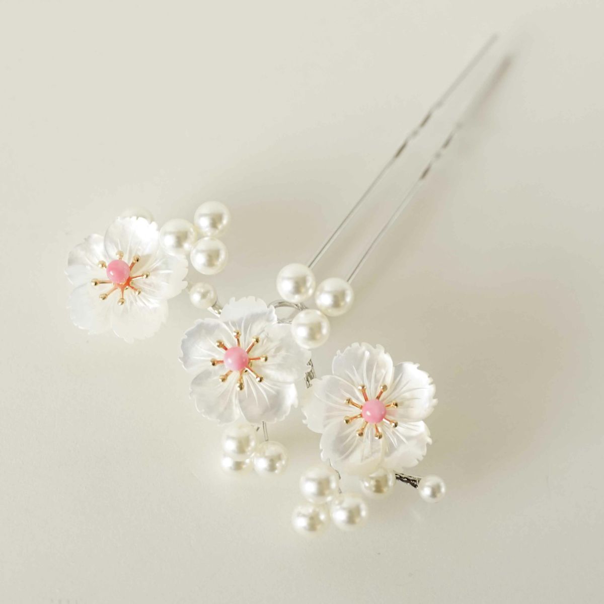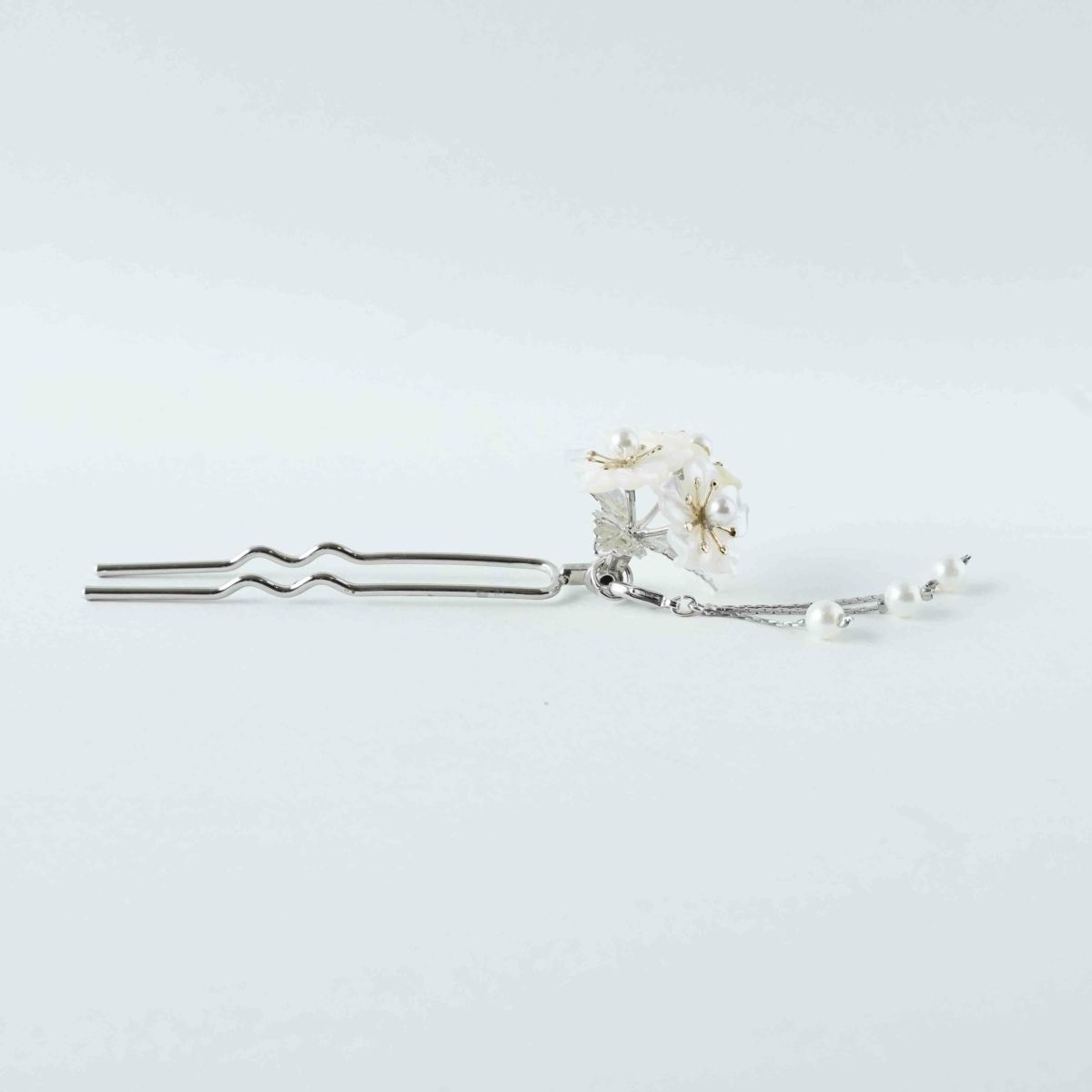 白蝶貝 三輪枝桜 花月かんざし(パール下がり付き)