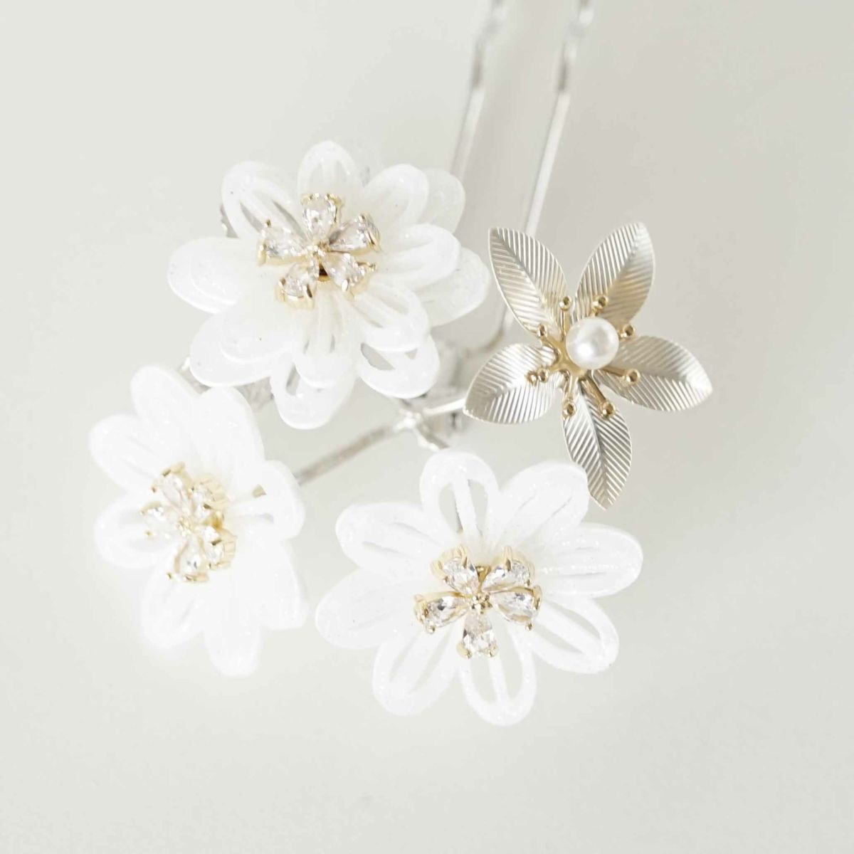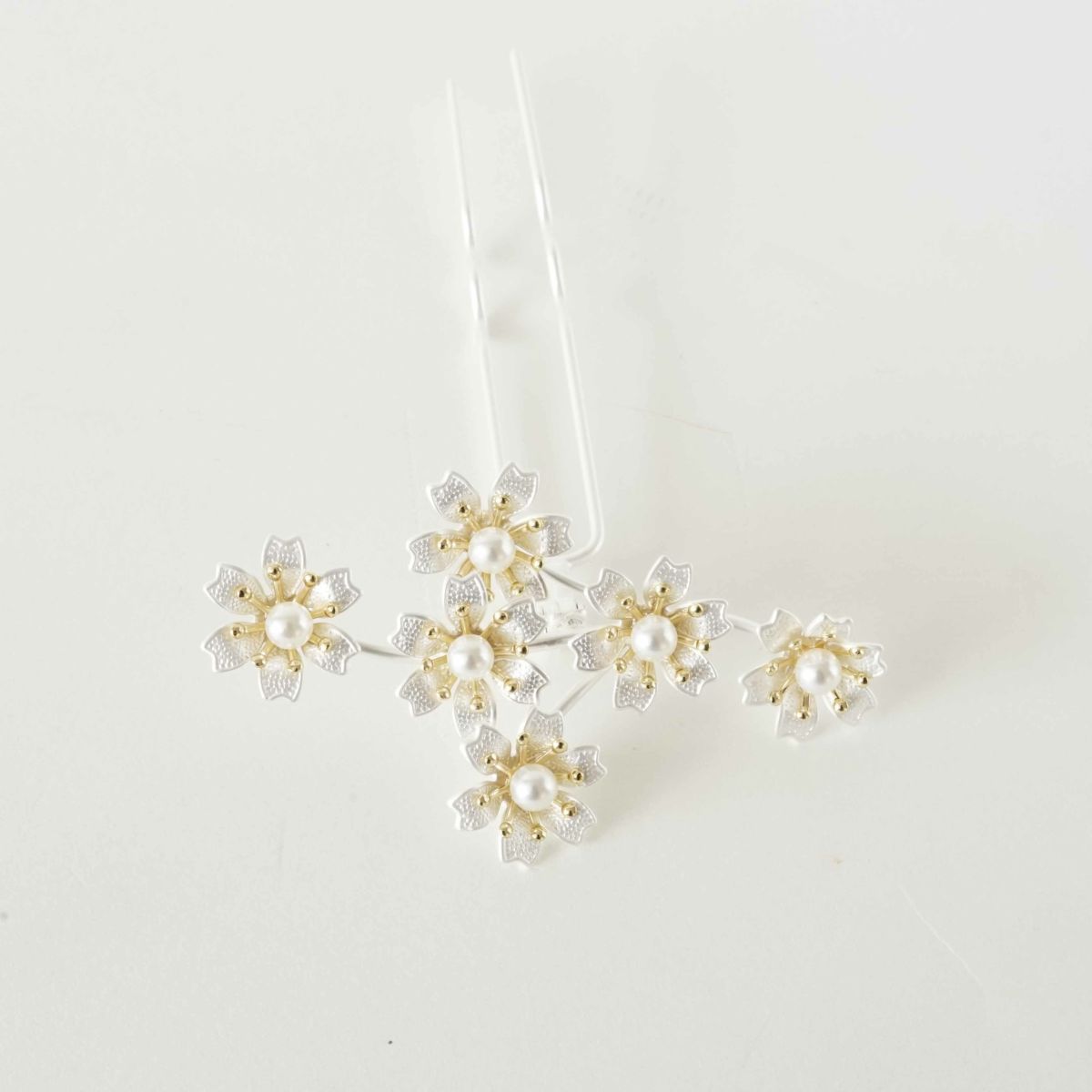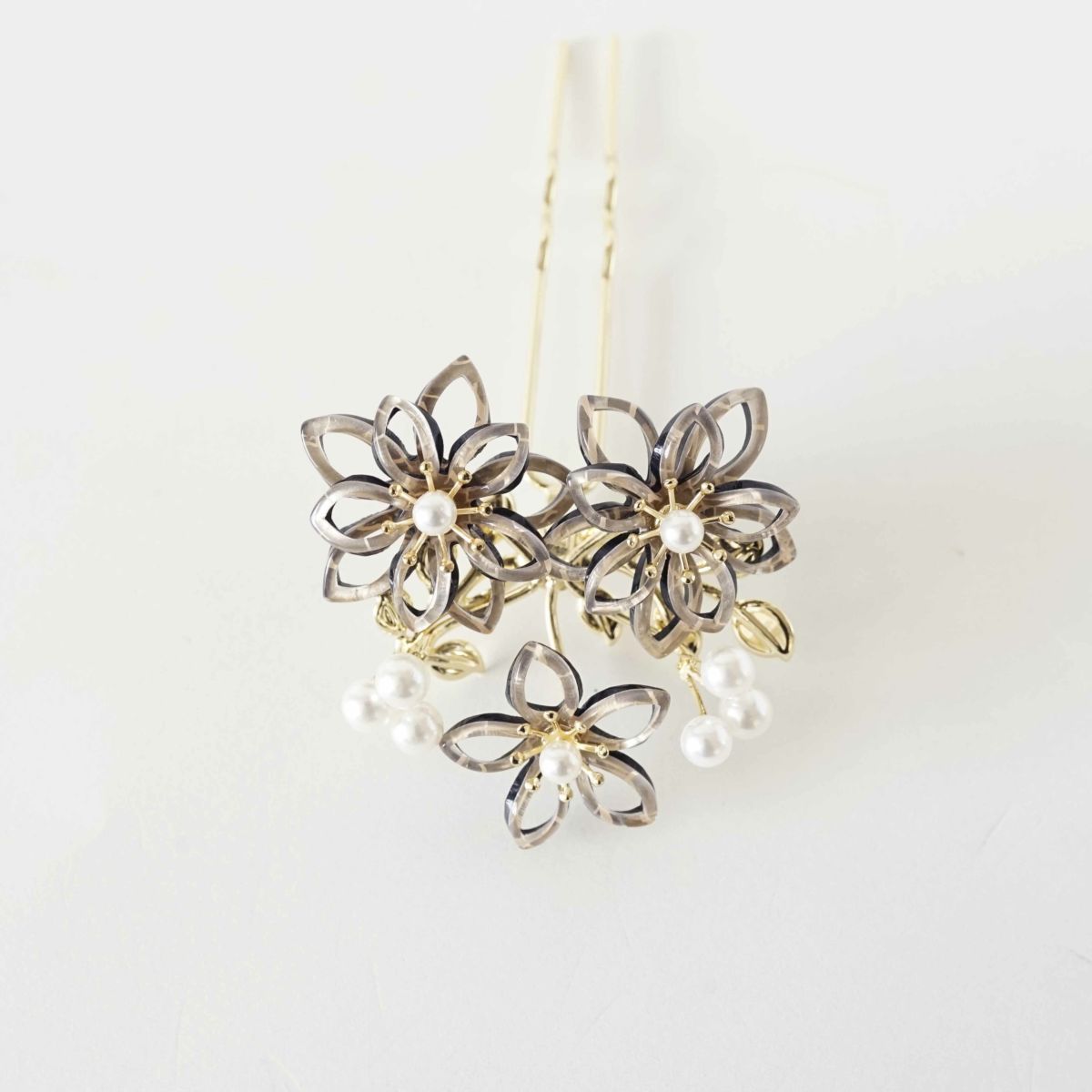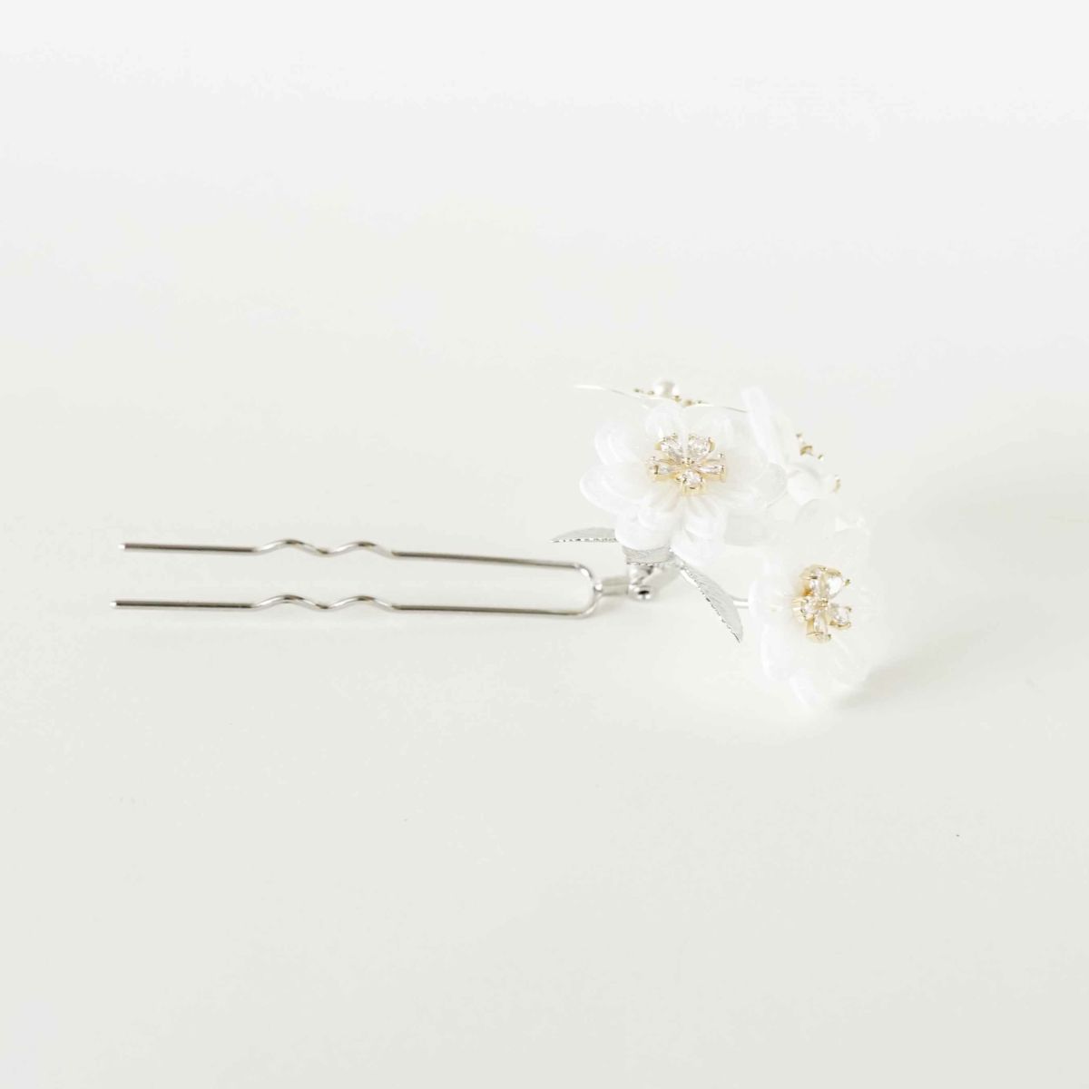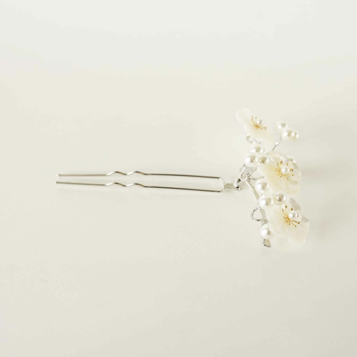 白蝶貝 三輪枝桜 花月かんざし(パール下がり付き)