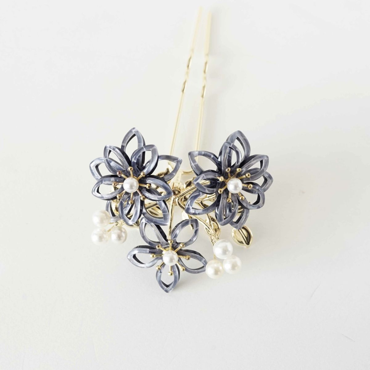 白蝶貝桔梗三輪 花月かんざし(パール下がり付き)
