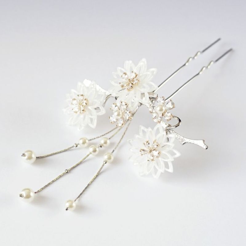 6. 三輪菊 花月かんざし(パール下がり付き)白