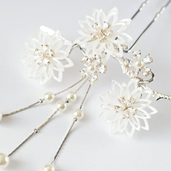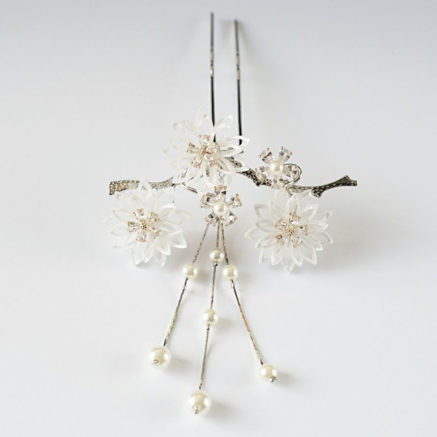 白蝶貝 三輪枝桜 花月かんざし(パール下がり付き)