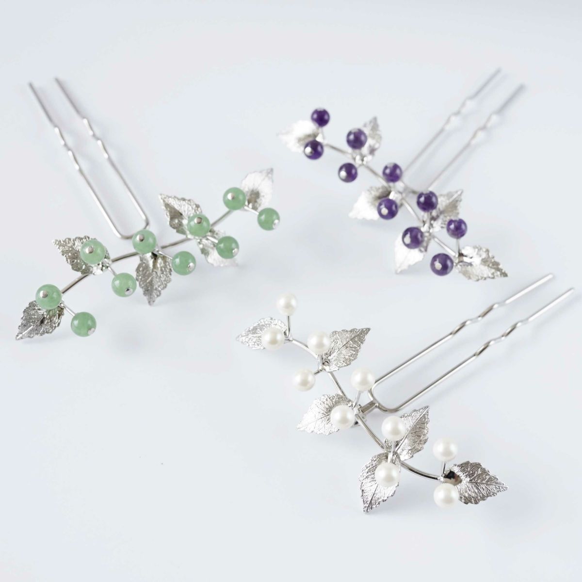 白蝶貝桔梗三輪 花月かんざし(パール下がり付き)