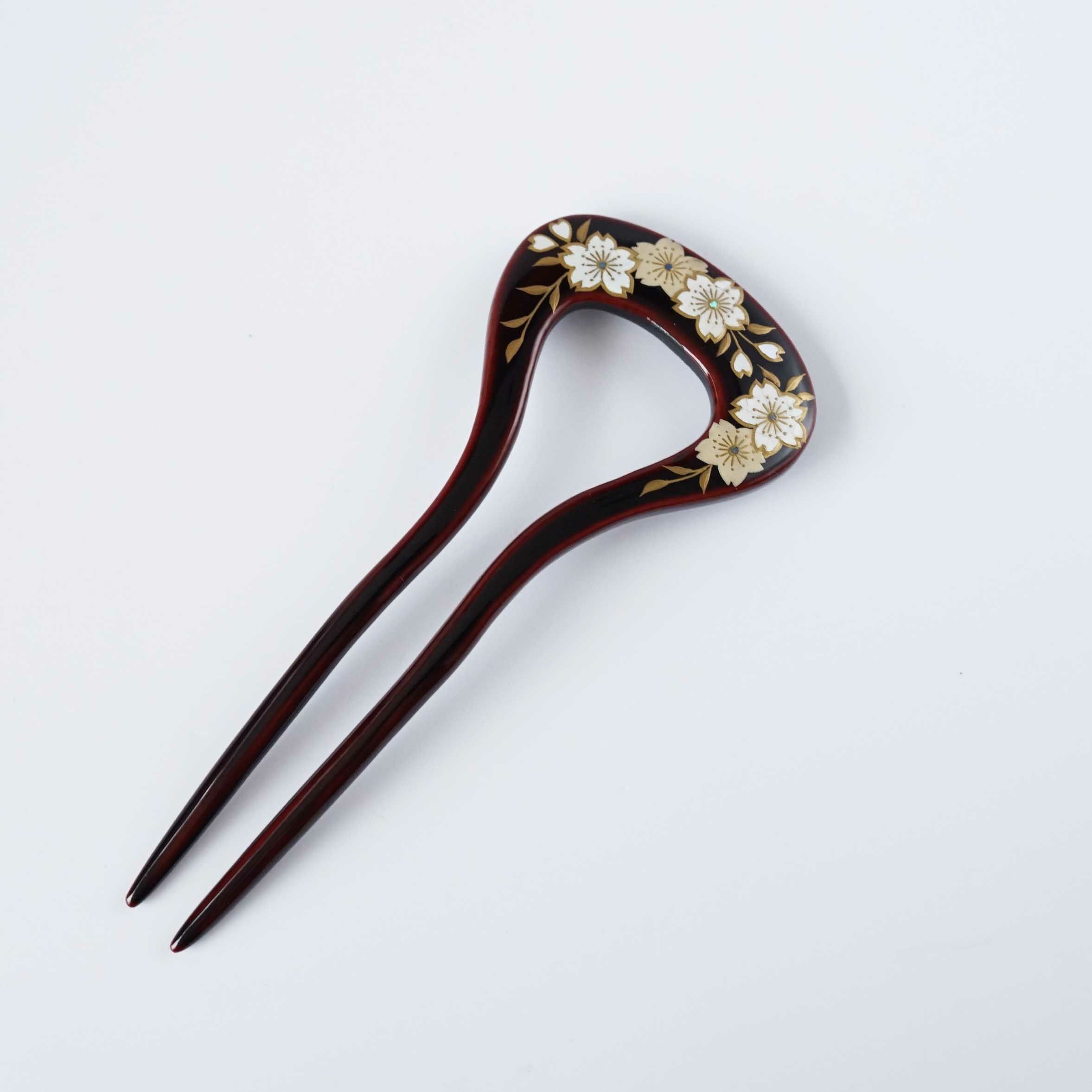 本漆純金蒔絵螺鈿かんざし 波型ピン(小) 三輪桜