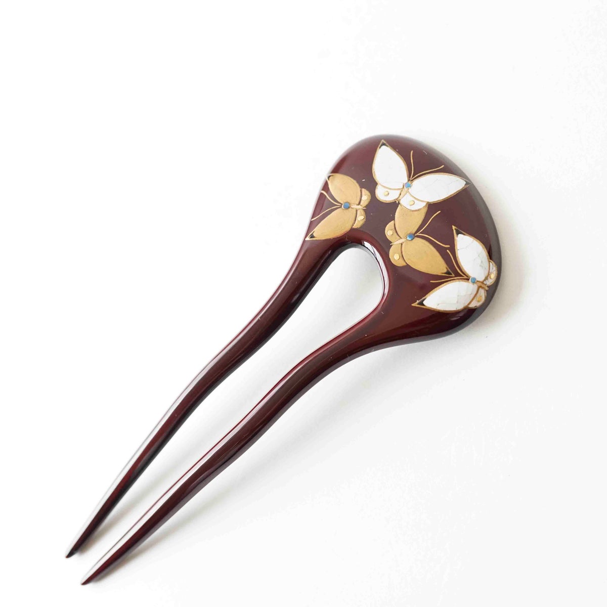 本漆純金蒔絵螺鈿かんざし 角丸ピン 蝶文様