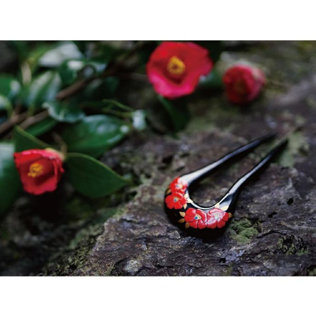 本漆純金蒔絵螺鈿かんざし 輪ピン(中) 正倉院文様