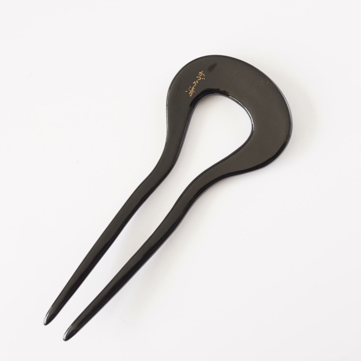 本漆純金蒔絵螺鈿かんざし 変型輪ピン 桜文様(黒色)