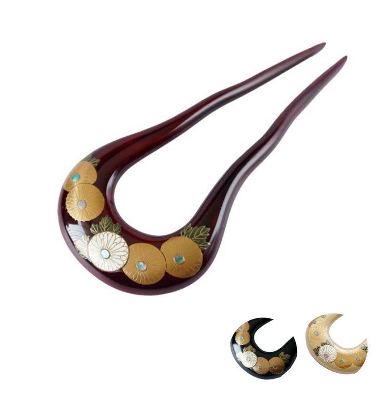 本漆純金蒔絵螺鈿かんざし 波型ピン(中) 宝尽くし文様