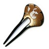 本漆純金蒔絵螺鈿かんざし 変型輪ピン 大輪牡丹文様 (24金・白蝶貝・プラチナ) 黒色