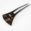 本漆純金蒔絵螺鈿かんざし 銀杏ピン 王朝文様(黒色)