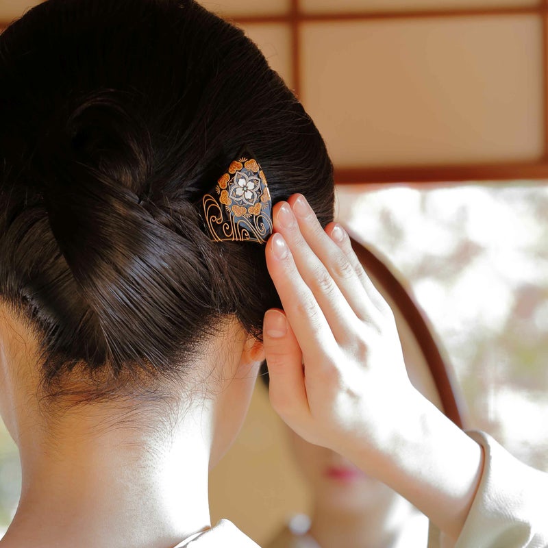 本漆純金蒔絵螺鈿かんざし 銀杏ピン 宝尽くし文様