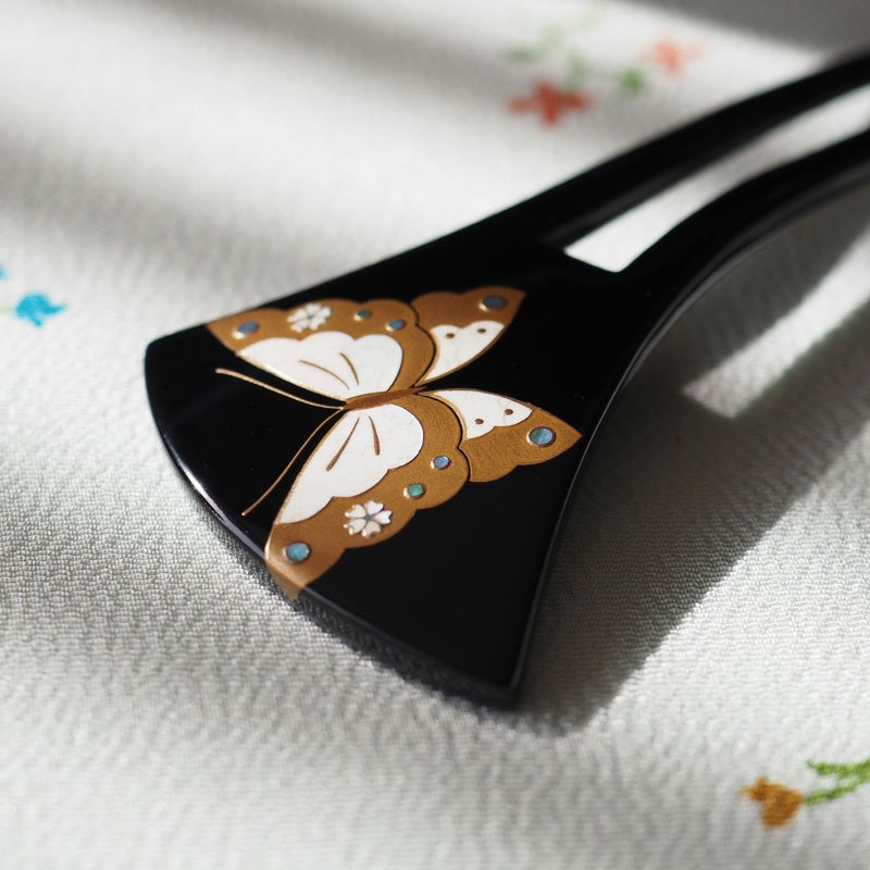 本漆純金蒔絵螺鈿かんざし 銀杏ピン 正倉院文様