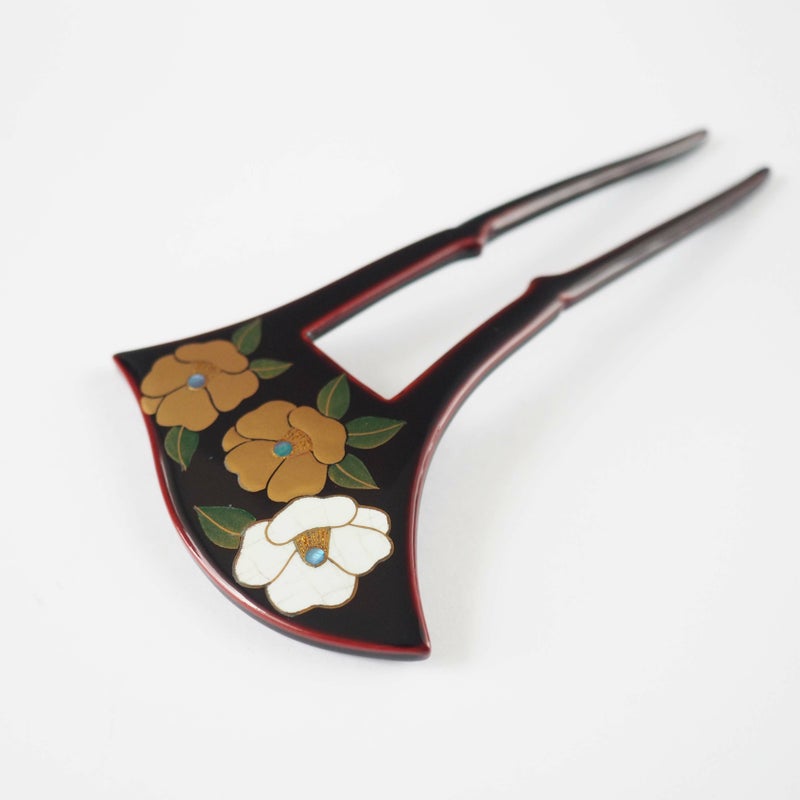 本漆純金蒔絵螺鈿かんざし 銀杏ピン 宝尽くし文様