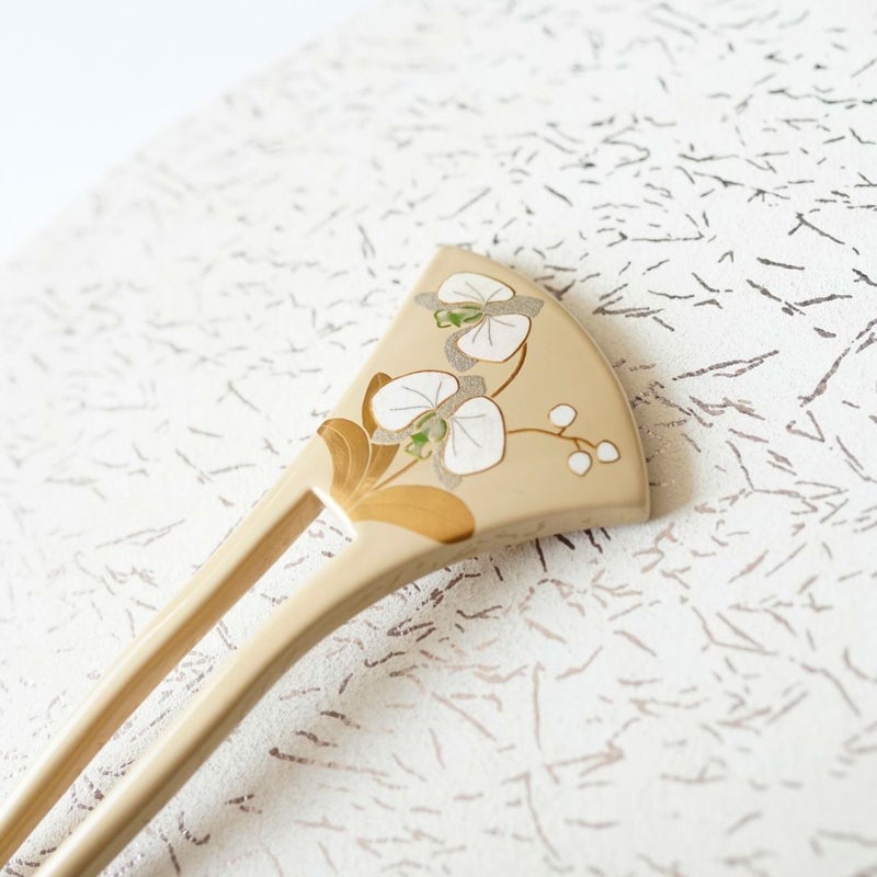 本漆純金蒔絵螺鈿かんざし 銀杏ピン 胡蝶蘭文様