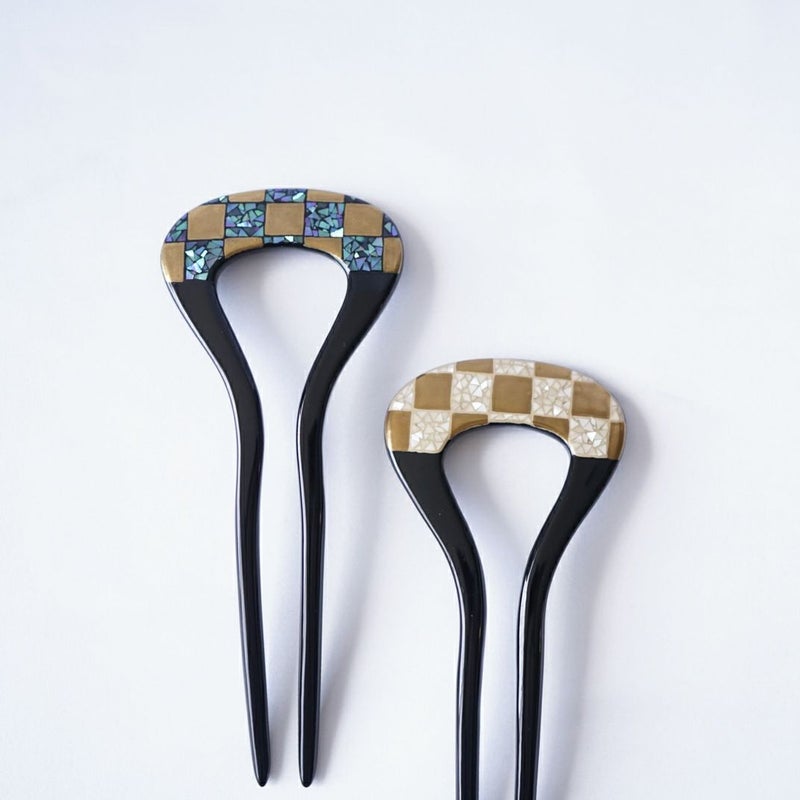 本漆純金蒔絵螺鈿かんざし 輪ピン(小) 市松