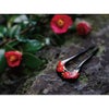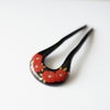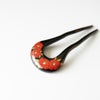 本漆純金蒔絵螺鈿かんざし 輪ピン(中) 椿文様(黒色)