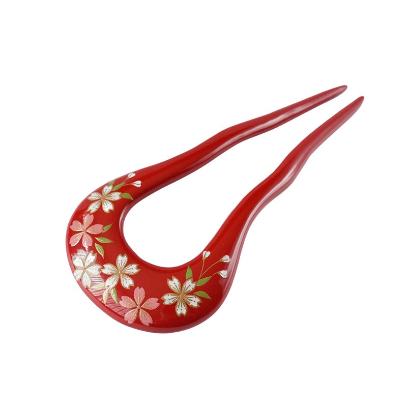 5. 本漆純金蒔絵螺鈿かんざし 輪ピン(中) 桜文様(朱)