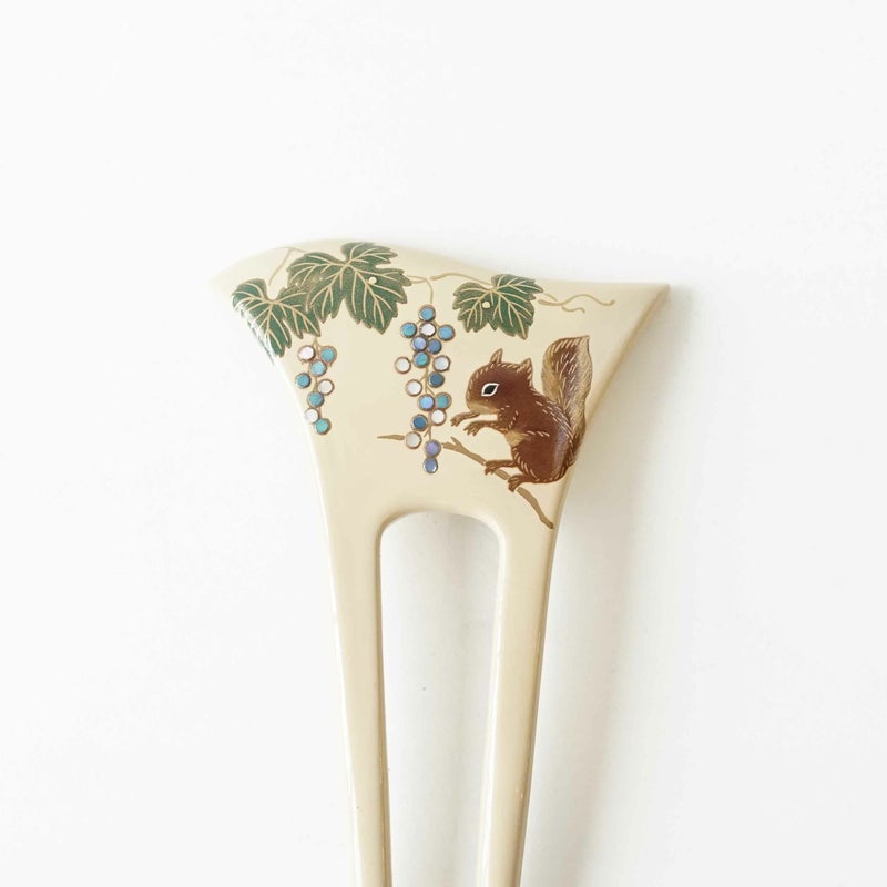 愛らしいリスに葡萄の蒔絵と螺鈿かんざし。