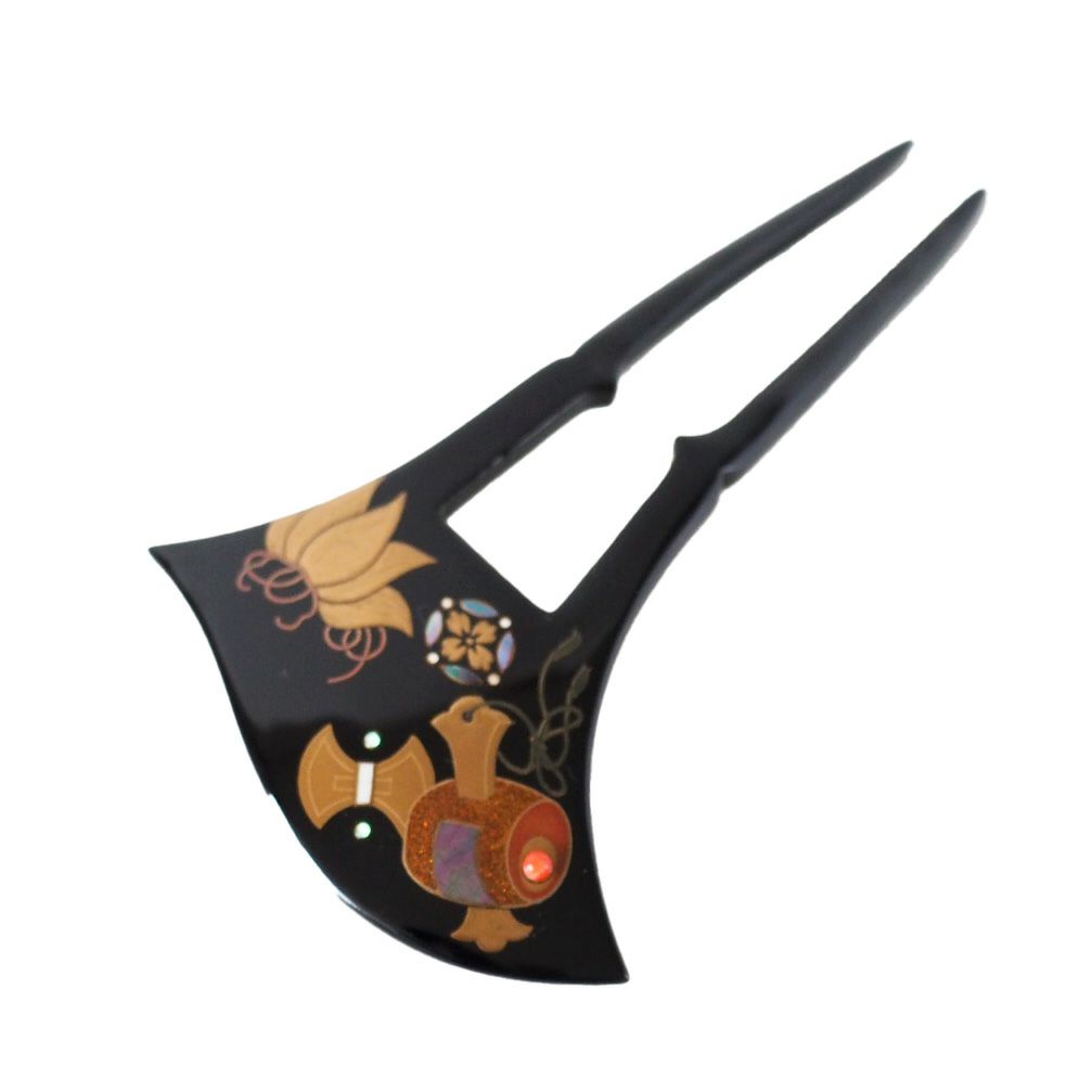 本漆純金蒔絵螺鈿かんざし 波型ピン(中) 宝尽くし文様