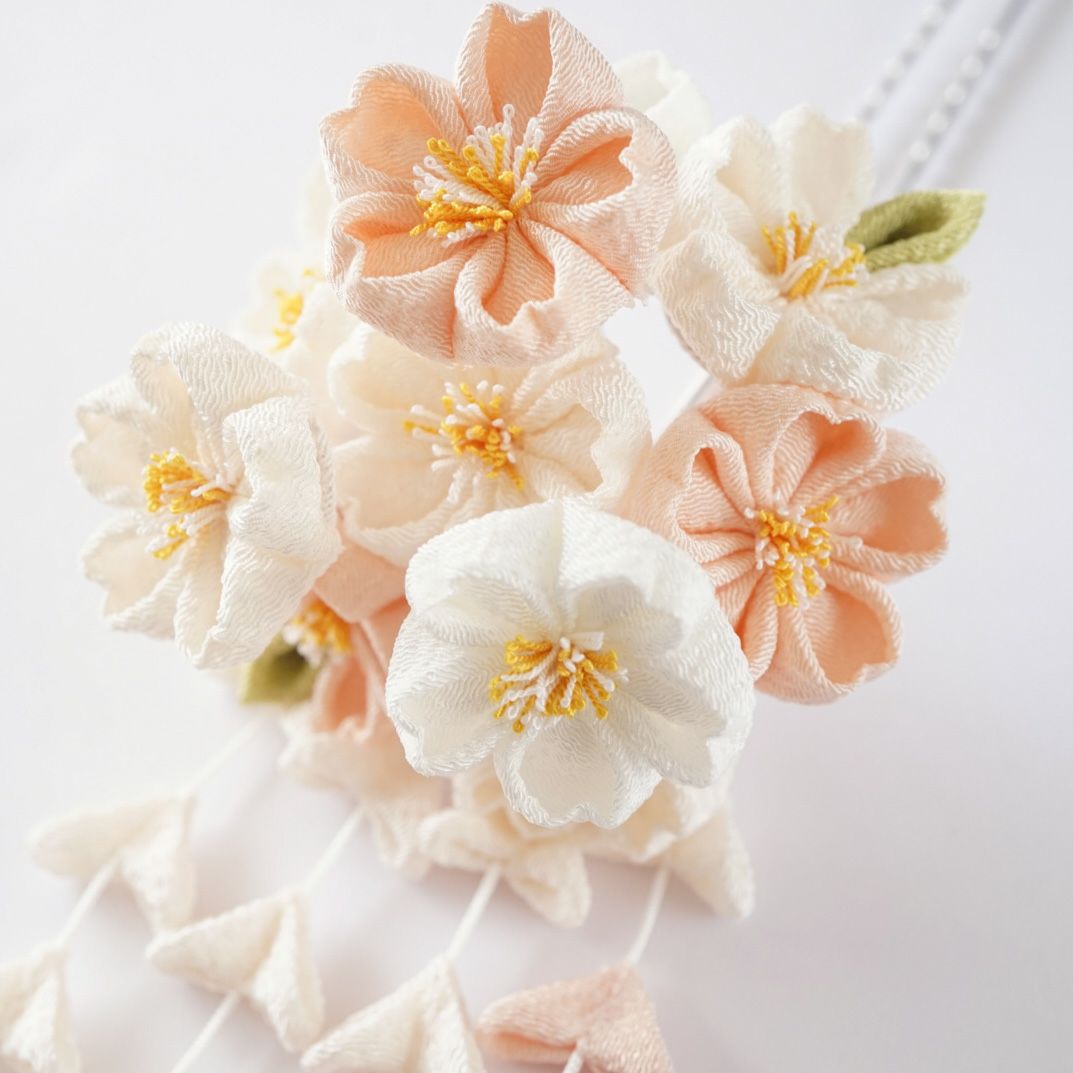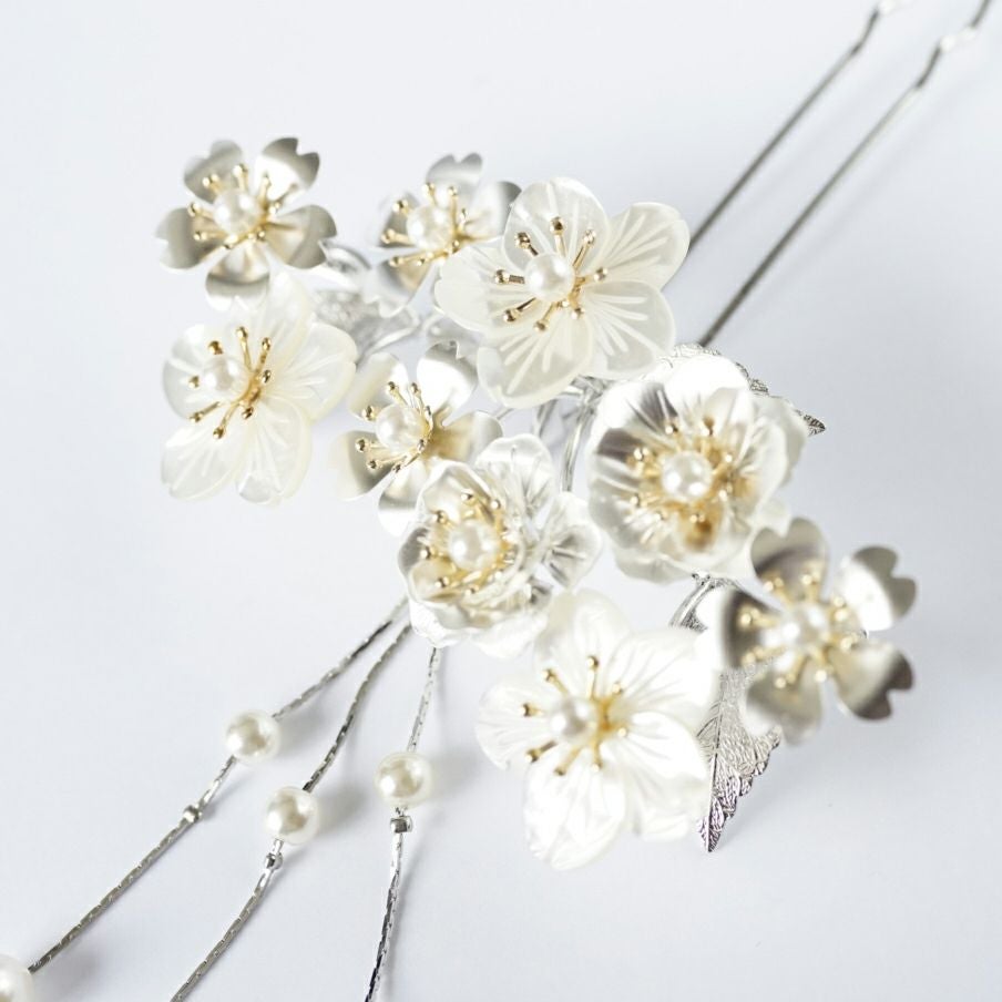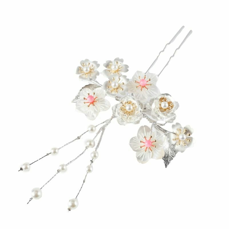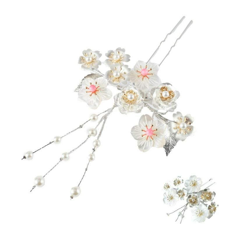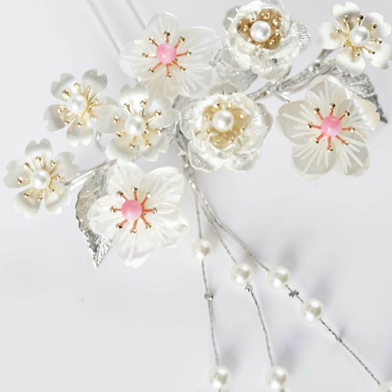 白蝶貝 桜・牡丹 花月かんざし(パール下がり付き)