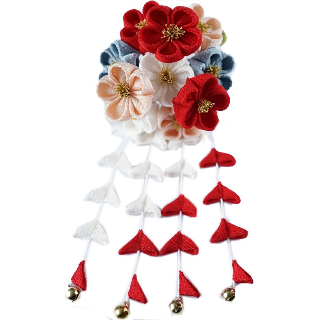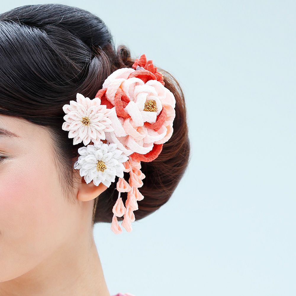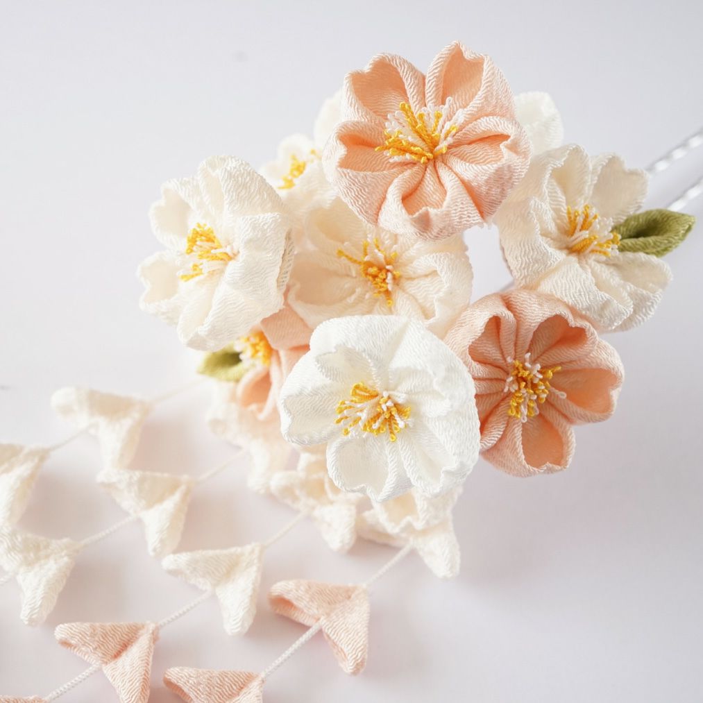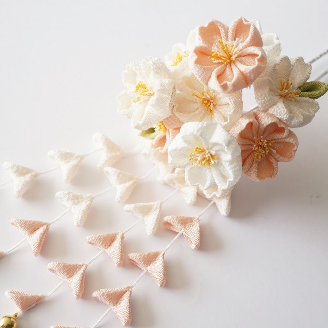 白蝶貝 桜・牡丹 花月かんざし(パール下がり付き)