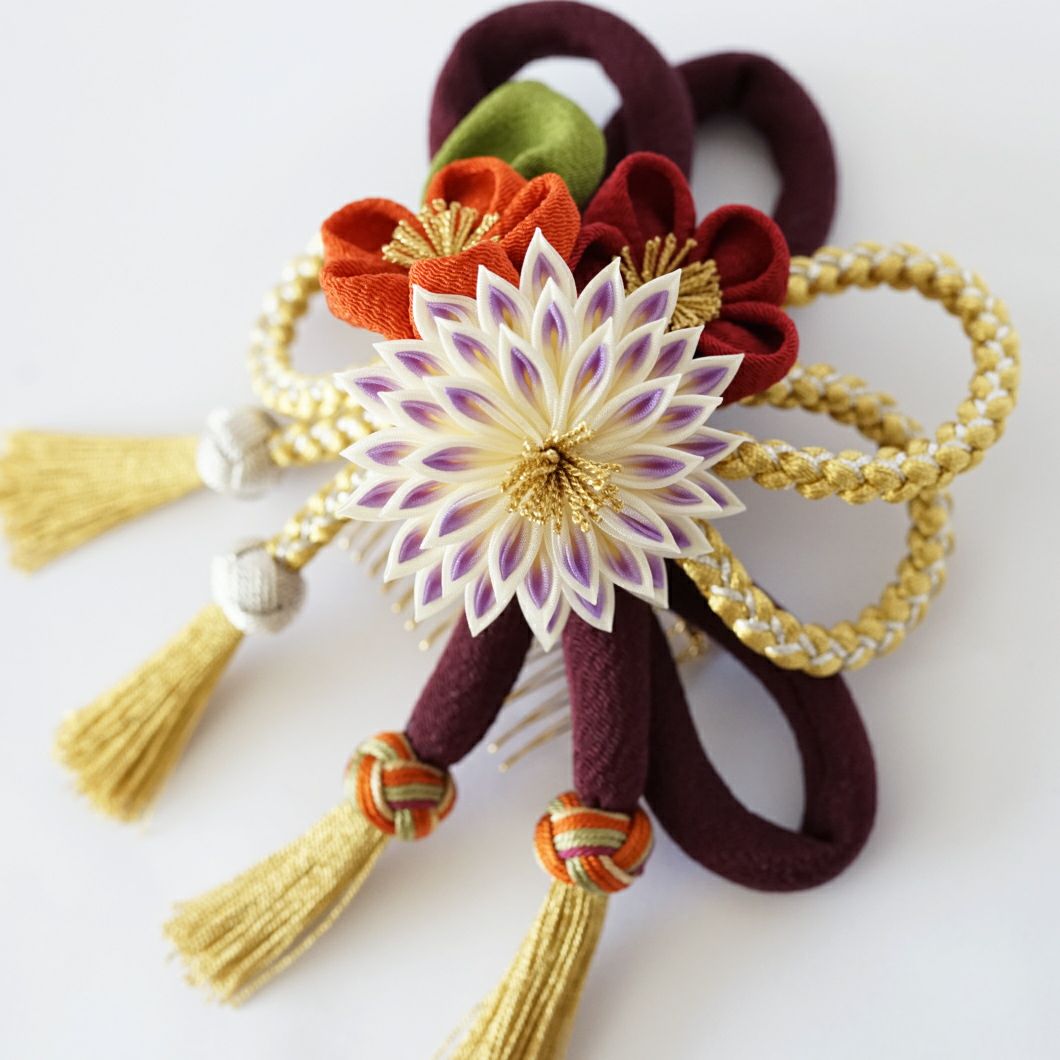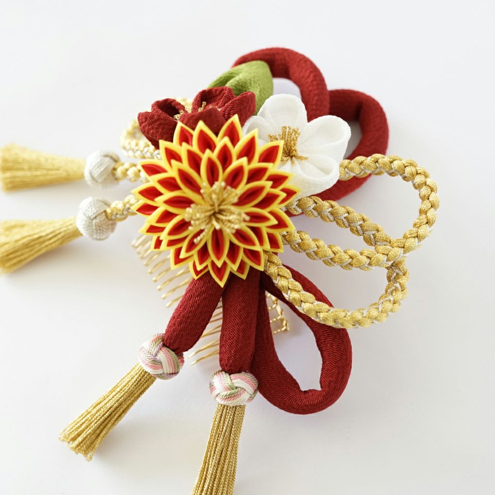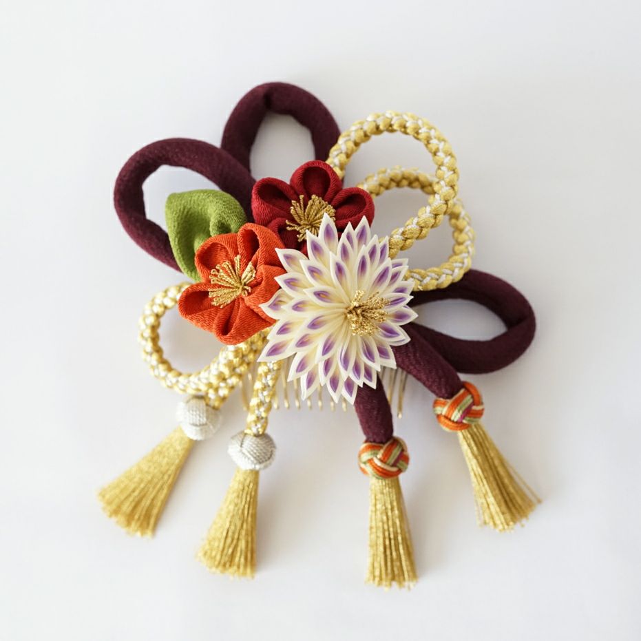 八輪菊梅コーム 金組紐
