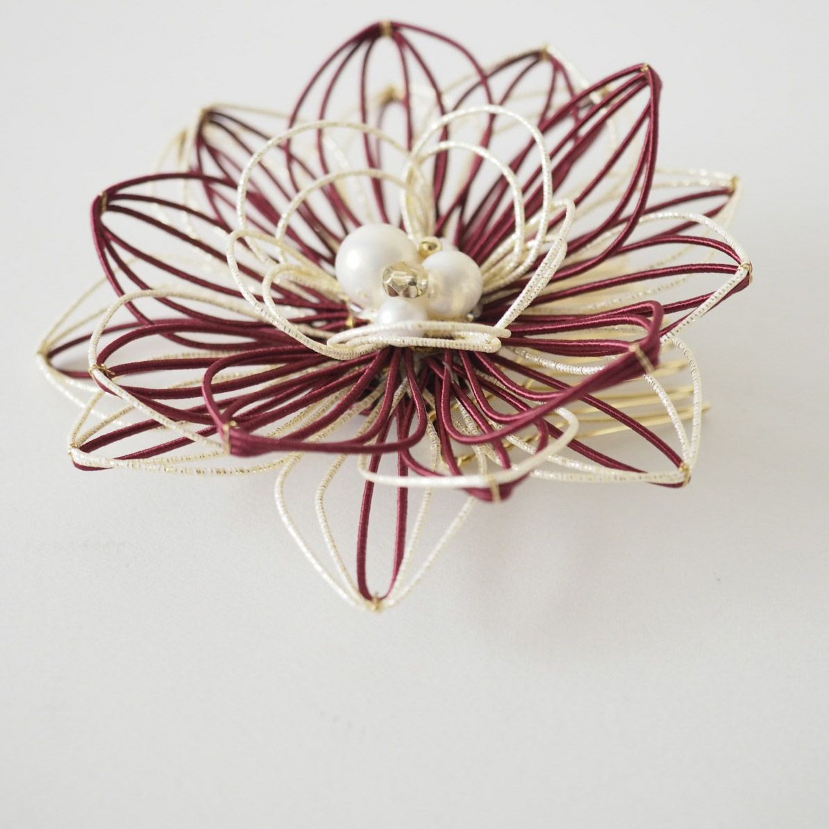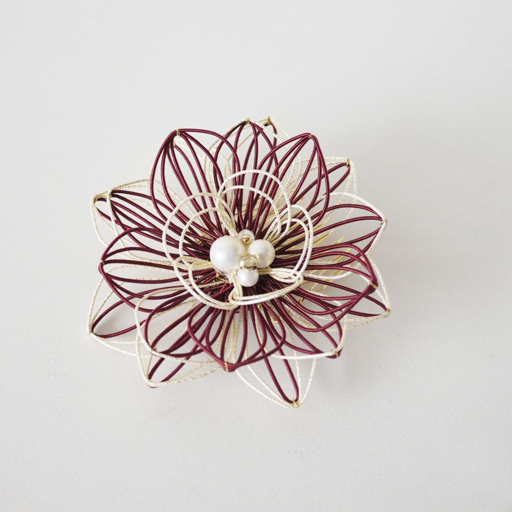 本漆純金蒔絵螺鈿かんざし 輪ピン(中) 七宝つなぎ文様