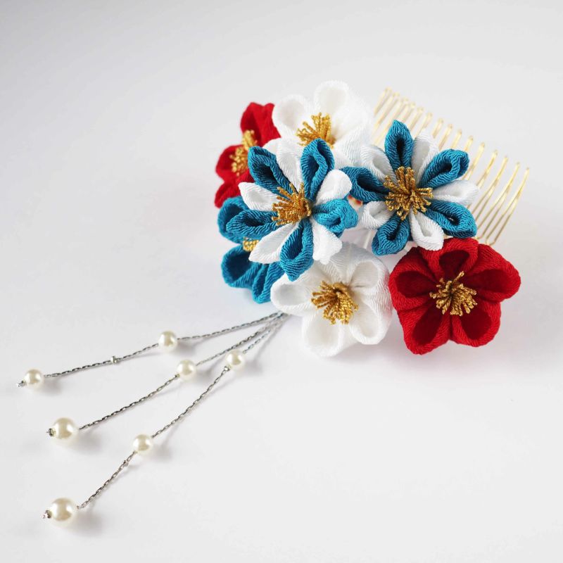 剣菊と梅七輪コーム  青赤系(パール下がり)