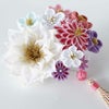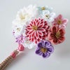 上品なテッセンに色とりどりの菊梅が、花束のような可愛らしい髪飾りです。