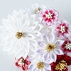 そんな日本古来の色彩でちりめんを染め上げ、まねのできない伝統の技で創りあげました髪かざりです。