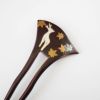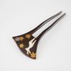 4. 本漆純金蒔絵螺鈿かんざし 波型ピン(小) 鹿に紅葉文様(溜色)